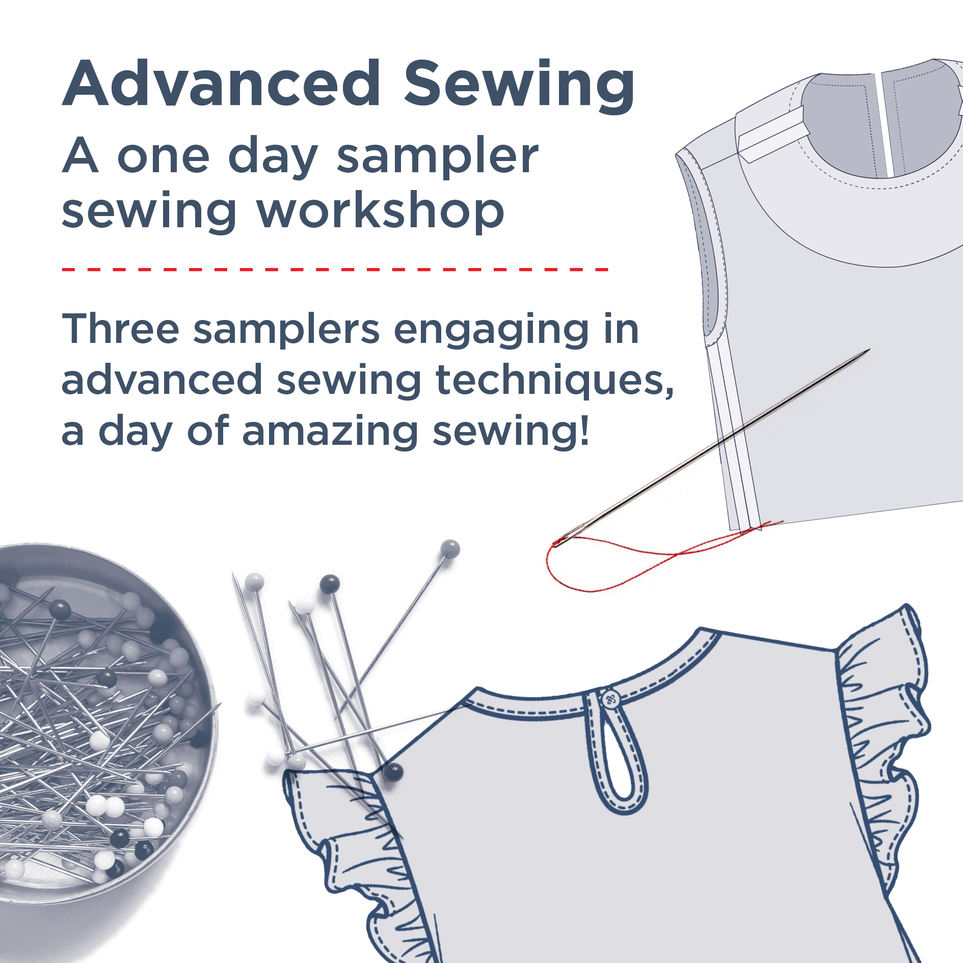 Advanced Sewing is designed for those who have experience sewing and would like to elevate their skills. This one-day workshop will guide participants through the process of creating garment prototypes, focusing on advanced techniques and practical applications.